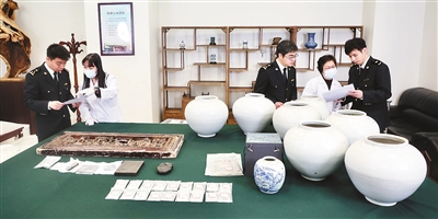 为打击文物走私,天津海关近年来持续强化智能审图技术的运用,在情报、鉴定、移交等方面,深化与公安、文保等多部门的联系配合。“比如,此前有一个邮件的机检图像里,呈现出了明显的工艺品器皿特征,我们开拆查验后,发现玉雕、铜器、砚台等物品,疑似是文物。我们第一时间联系了天津市文化遗产保护中心,经过鉴定,包括姚文田款石砚在内的6件物品属于国家禁止出境的一般文物。”天津海关所属邮局海关邮件监管一科三级主办魏超介绍。