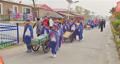 为深挖红色资源价值,村里打造了“重塑军民情·我要送军粮”中小学红色教育基地,孩子们穿上“军装”,扛起“枪”,推起独轮车,体验往昔艰辛,感受深厚的军民鱼水情。
