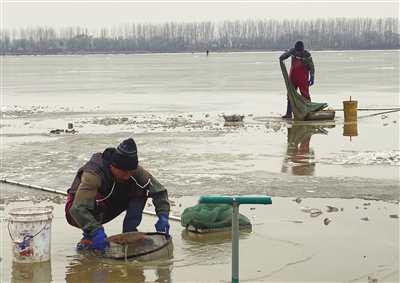 “大哥,你们这是干什么呢?”记者上前询问。“捞红虫子!”一位忙得满头热气的中年男子直起身,喘着气回答。男子自称是附近村民,从河面结冰起,几乎天天来。“一天下来,差不多能捞个十来公斤。”他说,红虫价格随行就市,“最高卖过50块钱1公斤,便宜时大概36块钱1公斤。”一旁同村的一位大姐插话道:“就指着潮白新河吃饭呢,一天能挣四五百元。”