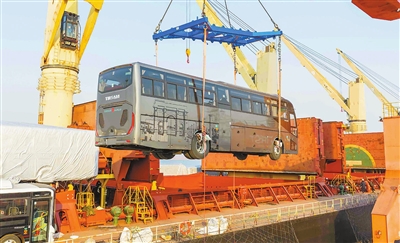 本报讯(记者 陈璠)近日,212台国产大巴车在天津临港港务集团(以下简称临港港务)14号码头顺利完成装船,搭载“尼克”轮出口至共建“一带一路”沿线国家阿尔及利亚。此次装船作业不仅刷新了临港港务单船装运车辆数量纪录,还通过高效操作大幅提升了装船效率,助力中国车企在阿尔及利亚“万辆公交车更新计划”中抢占先机,进一步拓展海外市场份额。