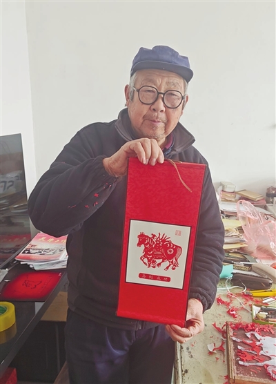 创作完成后,刘士存还在作品呈现形式上巧思创新。他展开一幅剪纸卷轴,上面的骏马线条流畅。“做成卷轴,既能更好地保存,也方便悬挂欣赏。”刘士存说。