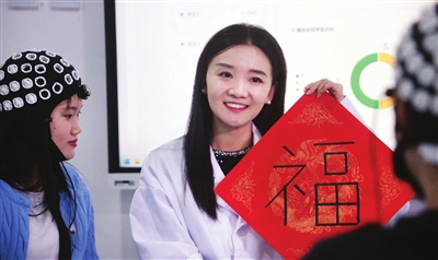过年了,团队自主研制的“哪吒”多脑协同控制系统,用两位同学的脑电波,共同操控智能机械臂,拿着毛笔,合作写出的一个漂亮的“福”字。“这也是我今年春节准备送给家人的礼物。”于海情笑容灿烂地说。 记者 张立 摄