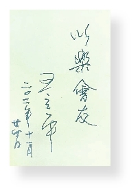 没过几天,我又在金色大厅门口见到先生,这次是作家代表们要在这里开一次全体会议。那天,我刚好随身带着一个册页本。来参加这次代表大会前,单位同事告诉我,作家代表大会五年才一次,十分难得。这样的作家聚会,可遇而不可求,最好准备一个本子,请自己喜欢的作家题写一句话,作为纪念。参会前,我特意去琉璃厂买了三本精美的册页本,准备请作家们题词留念。当我看见先生悠闲地站在门口时,便赶忙走过去:“王老师,您好!您还记得我吗?”“是你,小同志。我记得你,我还要感谢那天晚上你的帮忙,才让我最后赶上了那边的活动,不至于迟到、失约。谢谢你哟!”先生微笑着回答我。“没耽误您的事就好!”我边说边从背包中取出自己早已准备好的册页本和签字笔,“王老师,我从小就很喜欢您的音乐。不知能否请您给我题写一句话,我想留作纪念,可以吗?”听到我的这个请求后,先生笑着接过笔和本,“当然可以,谢谢你喜欢我的音乐。让我想想,给你写一句什么呢?”先生略微思索了一下,随后为我写下了这样一句话: