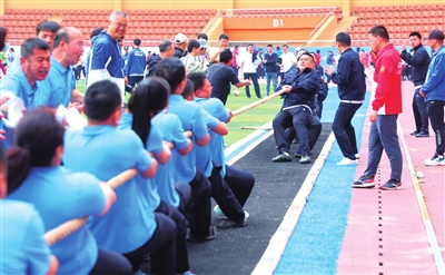 拔河比赛选手“绳”采飞扬,活力开“拔”。