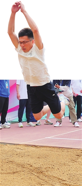 立定跳远选手跳出活力风采。