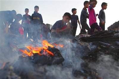5月27日,人们在加沙地带南部城市拉法查看以军轰炸后的难民营废墟。 新华社发