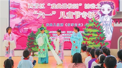 “六一”国际儿童节到来之际,西青区2024年“赓续文脉·艺润西青”传统戏曲进校园活动在张家窝镇祥和小学举办。专业戏曲老师将寓言故事与戏曲表演方式相融合,用更幽默的方式与孩子们互动,激发孩子们对传统文化的兴趣。