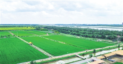 目前,西青区张家窝镇周李庄村鱼水田绿色生态园内水稻长势良好,呈现一派优美的田园风光。