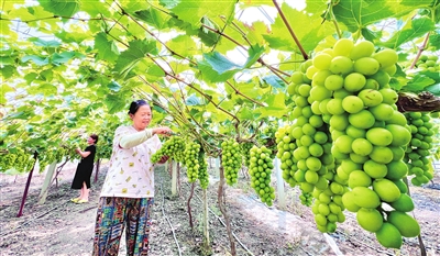 胡张庄村位于东丽区东北部、“津滨”双城之间绿色生态屏障内,是天津市巾帼现代农业示范基地和天津市2A级乡村旅游景区。胡张庄村立足葡萄种植,大力发展现代化设施农业,葡萄种植面积达到2000亩。葡萄特色产业先后被评为全市“津农精品”和全国“一村一品”,是强村富民的“甜蜜”产业。 本报记者 孙立伟 摄