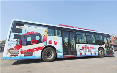 9月1日起,带有天津公交全新IP形象——“金文鳐”卡通图案涂装的主题车将正式上路运营。