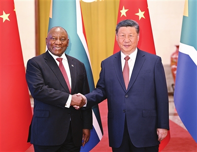 9月2日下午,国家主席习近平在北京人民大会堂同来华出席中非合作论坛北京峰会并进行国事访问的南非总统拉马福萨举行会谈。 新华社记者 李学仁 摄