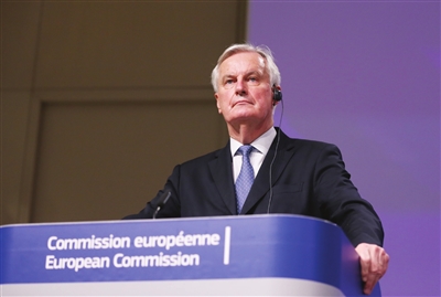 图为2020年12月24日,米歇尔·巴尼耶在比利时布鲁塞尔的欧盟委员会总部出席新闻发布会时的资料照片。