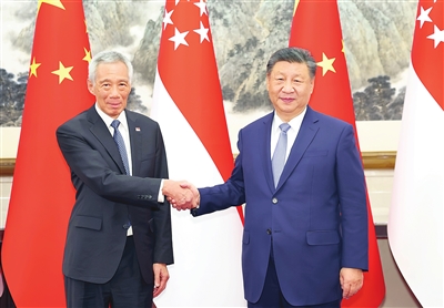 习近平积极评价李显龙担任新加坡总理期间带领新加坡取得显著成就,并长期关心和支持中新合作。习近平指出,去年我们共同确立了中新全方位高质量的前瞻性伙伴关系,为两国关系发展明确了战略方向。明年是中新建交35周年,双方要密切高层往来,进一步加强发展战略对接,深化各领域合作,为两国人民带来更多福祉,为地区和平繁荣作出更大贡献。