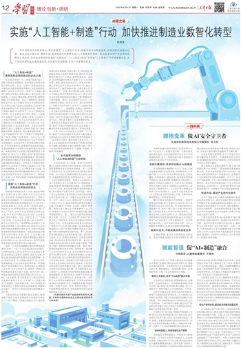 今年的政府工作报告提出,要持续推进“人工智能+”行动,将数字技术与制造优势、市场优势更好结合起来。制造业是立国之本、强国之基,是国民经济的重要支柱;人工智能是引领新一轮科技革命和产业变革的战略性主导技术,具有溢出带动性很强的“头雁效应”。“人工智能+制造”是实施“人工智能+”行动的重要内容,对于促进我国制造业高质量发展,加快建设制造强国,具有十分重要的意义。