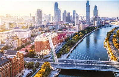 国航航机杂志《中国之翼》2025年7月刊收录的海河景色航拍作品(李光睿摄)。