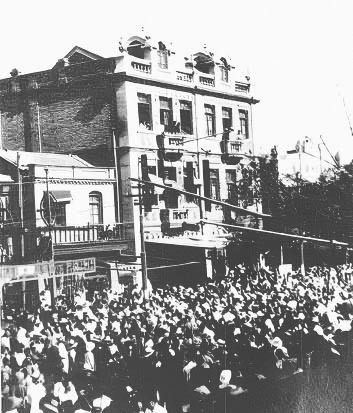题图为1925年五卅运动中天津人民示威游行队伍。