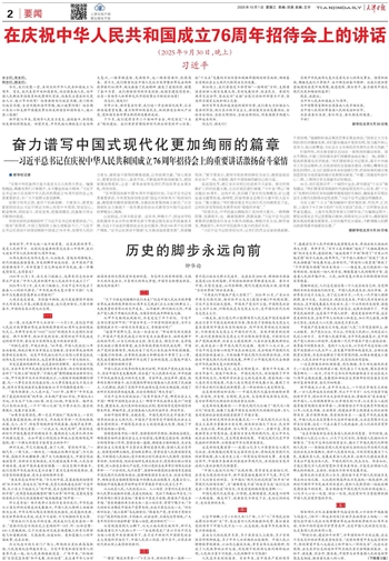 2025年的秋天,中国携手世界,在人类和平与发展的史册上写下了浓墨重彩的新篇章。从上海合作组织天津峰会到纪念中国人民抗日战争暨世界反法西斯战争胜利80周年活动,习近平总书记提出全球治理倡议,庄严宣示“中国人民坚定站在历史正确一边、站在人类文明进步一边,坚持走和平发展道路”,强调“坚定捍卫国际公平正义”“坚定守护世界和平安宁”……举世瞩目的中国主场外交,让世界看到一个负责任大国对和平发展的珍视与坚守,看到大党大国领袖以人类前途为怀、以人民福祉为念的宏阔视野和博大胸襟。