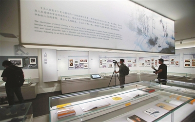 正在布展中的天津大学冯骥才博物馆。图为记者提前探馆。
