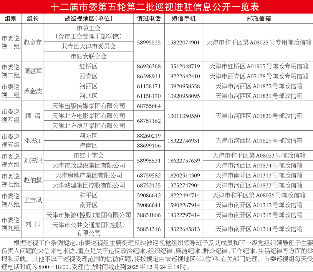 十二届市委第五轮第二批巡视进驻信息向社会公布。