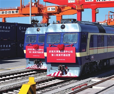 在服务京津冀协同发展方面,天津港充分发挥“海上门户”作用。环渤海内支线运力较六年前增长53%,建成了雄安新区服务中心、京津协同港口服务中心,70%的外贸集装箱来自京津冀地区,为京津冀地区的经济发展提供了强大的物流支撑。积极融入共建“一带一路”,天津港海向开通了南美西、美东等直航航线,“一带一路”航线达到69条;陆向发挥3条大陆桥通道优势,2024年跨境陆桥运量7.1万标箱,位居全国前列。