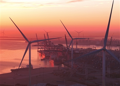 今年年初,全国首个防波堤风电项目在天津港成功并网发电,在未新增占海情况下,有效实现了存量资产盘活,开创了海上可再生能源开发新模式。近年来,天津港在能源绿色低碳转型方面的成效更是可圈可点,主导开发建成风、光等新能源发电系统146.5兆瓦,年发绿电能力超3.4亿千瓦时,覆盖集团生产用电近70%。如今,天津港全部滚装码头实现“零碳”运营,8家星级绿色港口熠熠生辉,天津港第二集装箱码头公司、天津港太平洋国际集装箱码头成功获评五星级绿色港口。