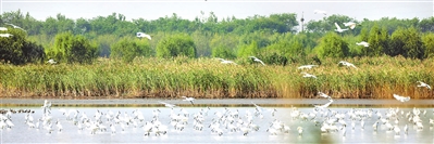 近日,1200余只国家二级保护动物——白琵鹭飞抵七里海湿地,成为今年抵达该湿地的首批大型保护鸟类。
