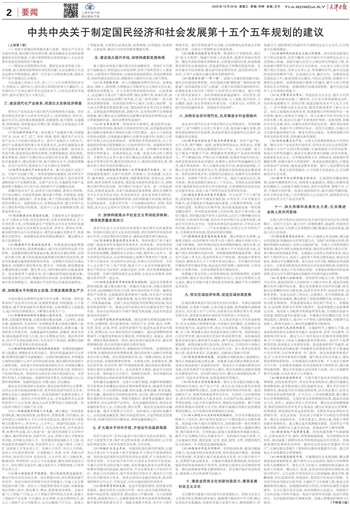 中国共产党第二十届中央委员会第四次全体会议深入分析国际国内形势,就制定国民经济和社会发展“十五五”规划提出以下建议。