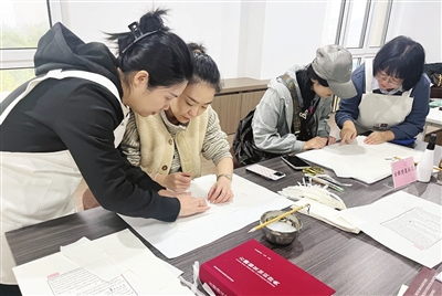 台湾团组成员体验古籍修复技艺。