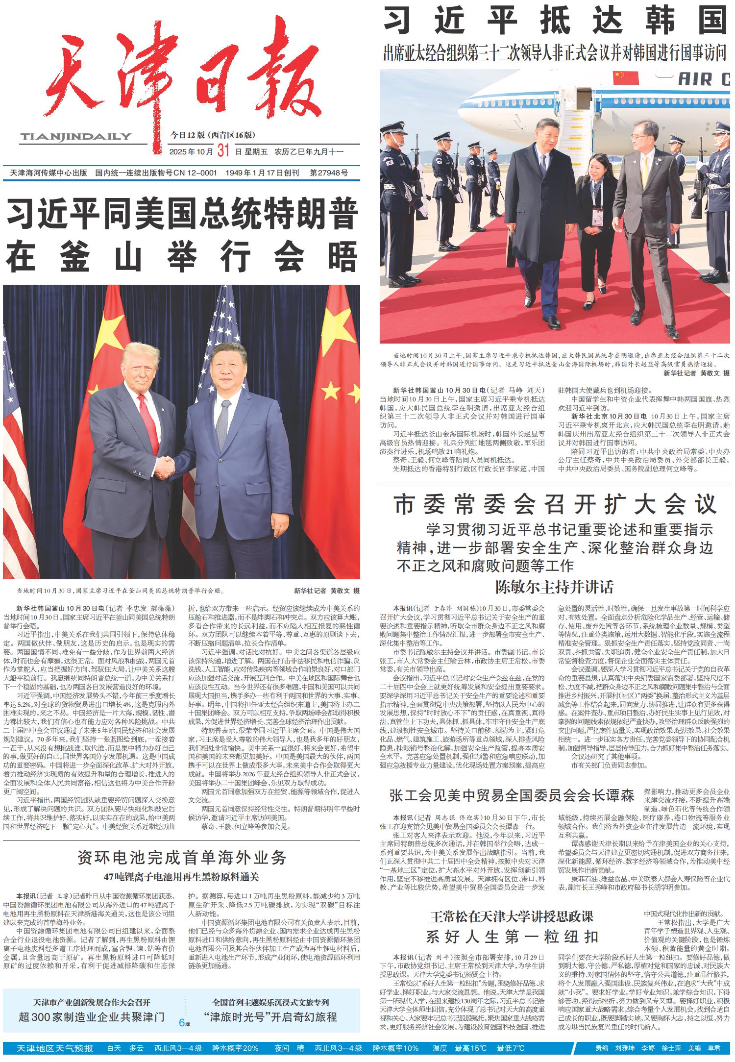 习近平同美国总统特朗普 在釜山举行会晤