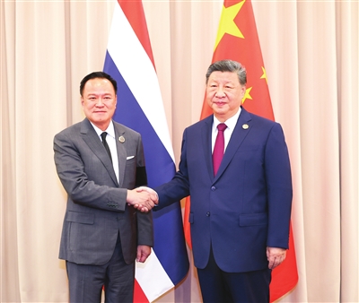 新华社韩国庆州10月31日电(记者 韩梁 曹嘉玥)当地时间10月31日下午,国家主席习近平在韩国庆州出席亚太经合组织第三十二次领导人非正式会议期间会见泰国总理阿努廷。