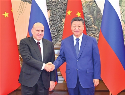 米舒斯京转达普京总统对习近平主席的亲切问候和良好祝愿。米舒斯京表示,祝贺中共二十届四中全会成功举行,相信中国一定会顺利实现“十五五”规划建议确定的目标,取得更大经济社会发展成就。两国元首今年两次会晤,对俄中关系发展作出战略规划,巩固了俄中全面战略协作伙伴关系。俄方愿同中方一道,落实两国元首达成的重要共识,深化经贸、科技、能源、农业、数字经济等领域合作,密切人文交流,加强多边协调配合,推动两国合作取得更多成果。