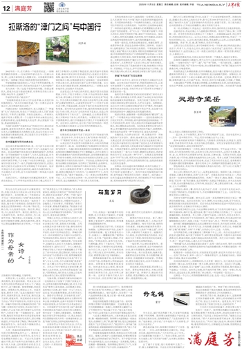在回返济南的车上,我频频回首,只为多看一眼红门。红门是我在方山顶见到的一座小庙,内里供奉着一尊大石佛,面相大慈大悲。站在红门外远眺,微风拂面,天高地阔,层云“叠嶂”,远山含黛,美丽景色尽收眼底,胸中混浊之气也随之一扫而空。此时我心如鹄,在天地间尽情飞舞。恰有一寺僧上来,经其指点,透过远处云雾,依稀看到了泰山极顶,一时也顿觉一览众山小。