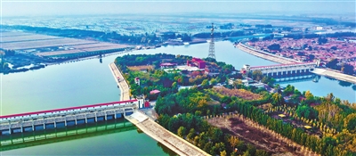 西青区辛口镇第六埠村位于子牙河、大清河与独流减河交汇处,“三河汇景”以金黄稻田为底、以清流为带,勾勒出一幅美丽的秋日画卷。