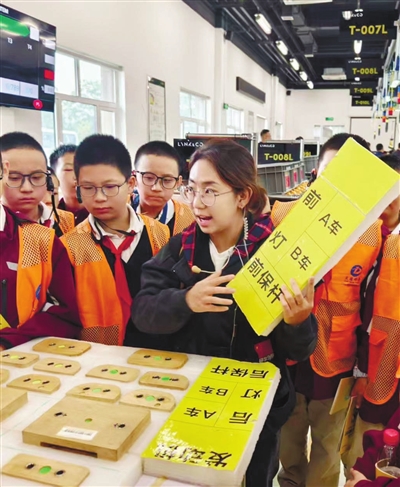 据南山汽车产业研学旅游基地负责人介绍,该基地课程环节设计突出亲身体验和动手操作,通过车间参观、触摸零件、组装车模、模拟生产、设计车辆等课堂活动,为学生提供沉浸式学习环境。“基地的课程场景设计基于真实生产环境、实用技术教室,以汽车实物和零部件实物为教具,用‘活教材’帮助学生快速理解汽车的构造和生产流程。”他说。