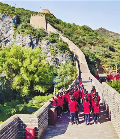 在张家口大境门研学旅游基地的城墙下,一群五年级的学生正凑近观察明长城的砖石纹理。从古代商贸中心到现代研学基地,作为“万里长城第一门”,这里不仅是孩子们的历史课堂,更是实践场。