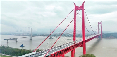 11月6日上午,我国首座双层斜拉—悬索协作体系大桥——铜陵长江三桥正式通车,这也是长江安徽段第11座跨江大桥。据了解,项目采用的“斜拉—悬索协作体系”既有效利用了悬索桥“一跨过江”的优点,降低了对通航的影响,同时有效利用斜拉桥承重强的优势,将主塔建在岸边避开防洪堤坝,保障防洪安全。 新华社发