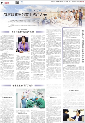 监护仪的滴答声藏着生命的节律,无影灯折射出人性的光芒。“提灯女神”南丁格尔的烛火穿越百年,依然在渤海之滨一群身着白衣的守护者心头闪耀。他们中,有当代护理学科领军人田丽,有在骨科手术台上以男性视角重塑护理边界的杨成荫,还有手握博士学位、在肿瘤医院病房里将科研与共情熔铸一炉的沈傲梅。