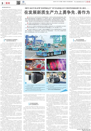 从百年工业积淀中汲取智慧,于新时代科创浪潮中勇立潮头,秉持“勇争先、善作为”的精神指引,天津发展新质生产力的实践渐入佳境,努力为中国式现代化谱写新的篇章。