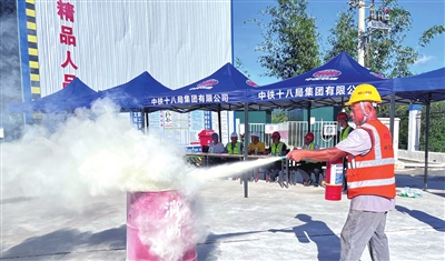 日前,驻津央企中铁十八局G98扩容6标项目部开展火灾应急救援实战演练。演练模拟电焊作业引发火情场景,七支应急小组紧密协作,有序完成报警、人员疏散、火灾扑救、伤员救护等关键环节,同步开展消防实操培训与安全宣传。此次演练有效提升了项目应急处置能力,筑牢施工安全防线,项目将持续压实安全责任,为工程高质量建设保驾护航。 通讯员 南彩弟 段玉霞