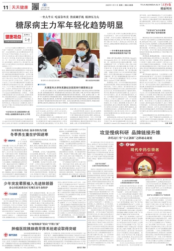 天津医科大学朱宪彝纪念医院党委书记、院长,糖尿病领域专家陈莉明表示,我国20岁到79岁成人糖尿病患者总数约为1.48亿,是世界上糖尿病患者数量最多的国家。近年来,糖尿病患者年轻化趋势明显,我国18岁至49岁劳动人口统计显示,2010年该人群糖尿病患病率为13.2%,2017年上升到17.5%。这两年,门诊中40岁上下的中青年糖尿病患者日益增多,他们都是单位和家庭的中坚力量。她提醒职场中人,千万不要以为糖尿病是老年人的“专利”。生活中,保持良好饮食习惯、规律作息、适当运动的同时,每年要测一次空腹血糖,大于6.1mmol/L就要到医院进一步排查。一经确诊糖尿病就要与医生加强沟通,克服职场困难,实现血糖长期达标,以远离糖尿病并发症。