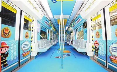 同步完成更新的消防主题列车,则充分利用了乘客的出行碎片时间,将车厢打造为流动的消防安全宣传课堂。列车围绕“居家防火知识”“火灾应急处理知识”“公共场所消防知识”及“消防形象展示”四大模块进行内容编排,并运用不同色调区分主题车厢,使消防安全教育在乘客的日常出行中无缝融入。