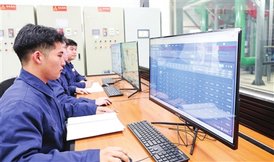 和平区中环供热站实时监测管网运行数据。 记者 吴迪 摄