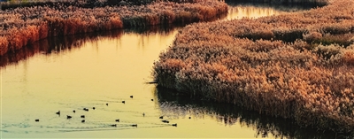 昨天日落时分,位于西青区独流减河左堤沿岸的西西海生态湿地被鎏金霞光包裹,水面粼粼波光与候鸟灵动羽影相映成趣,勾勒出一幅人与自然和谐共生的迷人图景。