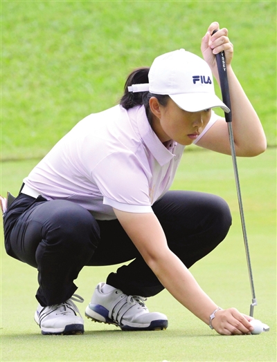 高尔夫球女子(个人+团体)第2轮昨天开赛,天津队选手殷若宁在比赛中。