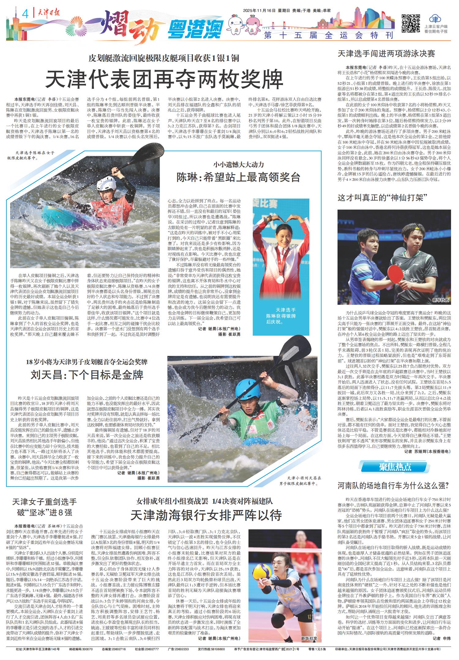 天津代表团再夺两枚奖牌