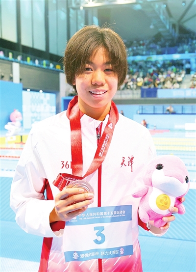 报名参加4项比赛的天津小将杨偌熙,昨天终于站上了领奖台,她在女子200米仰泳决赛中,以2分08秒78夺得铜牌,湖北队的彭旭玮和浙江队的柳雅欣以2分07秒74和2分08秒50分获冠、亚军。赛后,14岁的杨偌熙表示,这个结果在意料之中。