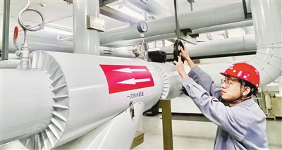 我市出现大风降温天气,津安热电南开供热服务中心供热管家在天越园换热站内加强巡视,确保辖区居民供暖正常。