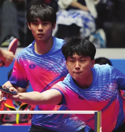 昨天,第十五届全运会乒乓球男子团体1/4决赛,天津队负于广东队。 记者 孙震 摄