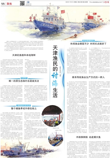 渔民的官方概念,还包括淡水鱼捕捞以及养殖渔业从业者,而传统天津人对海上捕鱼的人更为青睐,认为没有他们的劳作,就没有皮皮虾、对虾、海蟹等“本地海鲜”,他们才是让天津人兑现“借钱吃海货,不算不会过”的那群人。