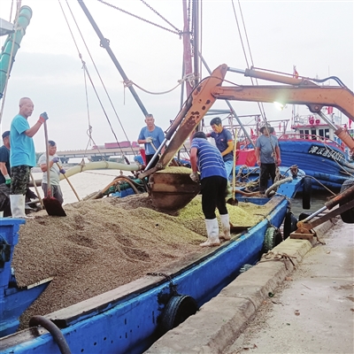 渔船卸下米蛤。